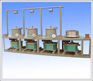 连罐式拉丝机(550-4型、500-4型)有四个单(卷铜)并联组成(简称联四),可拉拔铁、铝、铜等金属线材,故最适宜用于木螺丝、元钉、电工用导线等制造行业和建筑业成批加工线材。本公司生产的拉丝机与其他拉丝机相比,省电、效率高、维修方便、价格低,半年能收回投资。本机四个卷筒各用一个电动机单独驱动,加工过程中,随着线材拉细拔长,故后面的卷筒转速依次递增。盘材在本机上从进线(即头道拉丝模)至成品,拉拔过程一次完成,故生产效率高,成本低,操作管理简便。为满足用户需要,本厂可配一单台、或连二、连三、连五等组成的整机。